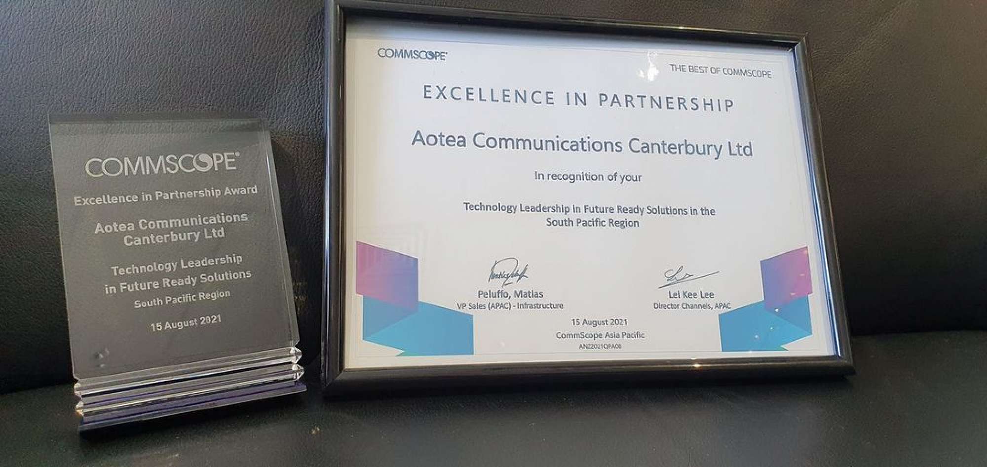 Aotea Group are proud to announce that Aotea Communications Canterbury were the recipients of the CommScope South Pacific Project of the Year award for their hard work on the Te Pae (The Christchurch Convention Centre).